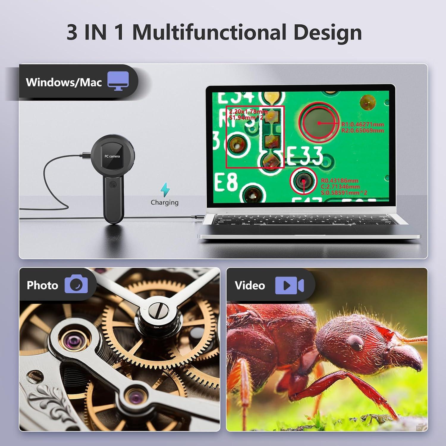 💻【USB Output for Larger View】Hayve lighted magnifying glass equipped with a full-function USB-C port,which supports connect ways to your laptops/Mac. Also,you can take photos, video and measure by software