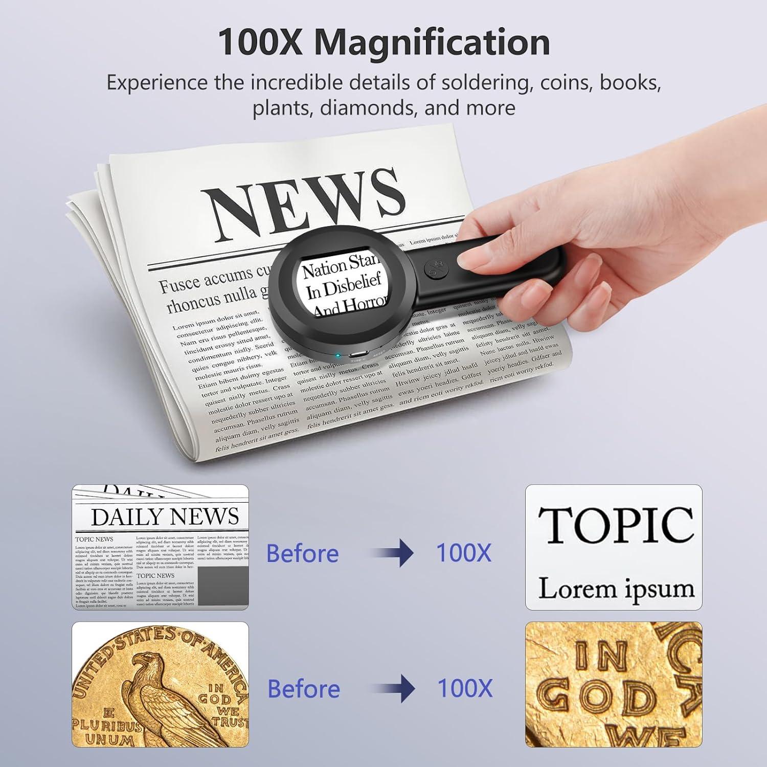 🏆【The First Magnifying Glass with Screen】Unlike traditional magnifiers,our magnifying glass adds 2.0 IPS screen. Say goodbye to eyestrain and ensuring comfort during extended use! Thanks to 178° widely view,you can enhancing your visual experience and making everything more vivid